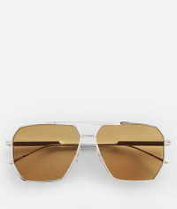 Aviator sunglasses in metal. Product Details - Bio nylon lenses - BV1012S 007 - Color: Silver/Brown - Made in: Italy - Product code: 590248V44501398 Material - Material: metal