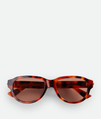 Aviator sunglasses in recycled acetate with signature gold-finished ribbon detailing. Product Details - Aviator sunglasses made with Eastman Acetate Renew, an acetate with 27% recycled content - Lenses made from polyamide with 39% bio-based content - Gold-finished long ribbon detail at the temples - BV1410S 002 - Color: Havana/Red - Made in: Japan - Product code: 845794V2Q301532 Material - Material: Recycled acetate Size & Fit - Lens width: 55 mm | 2.2" - Bridge length: 18 mm | 0.7" - Temple length: 145 mm | 5.7"
