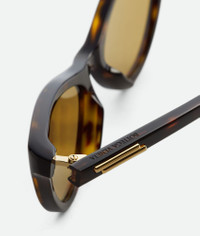 Cat eye sunglasses in recycled acetate with signature gold-finished ribbon detailing. Product Details - Cat eye sunglasses made with Eastman Acetate Renew, an acetate with 27% recycled content - Lenses made from polyamide with 39% bio-based content - Gold-finished ribbon detail at the temples - BV1414S 002 - Color: Havana/Brown - Made in: Italy - Product code: 845796V2Q302819 Material - Material: Recycled acetate Size & Fit - Lens width: 56 mm | 2.2" - Bridge length: 17 mm | 0.7" - Temple length: 140 mm | 5.5"
