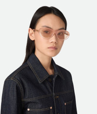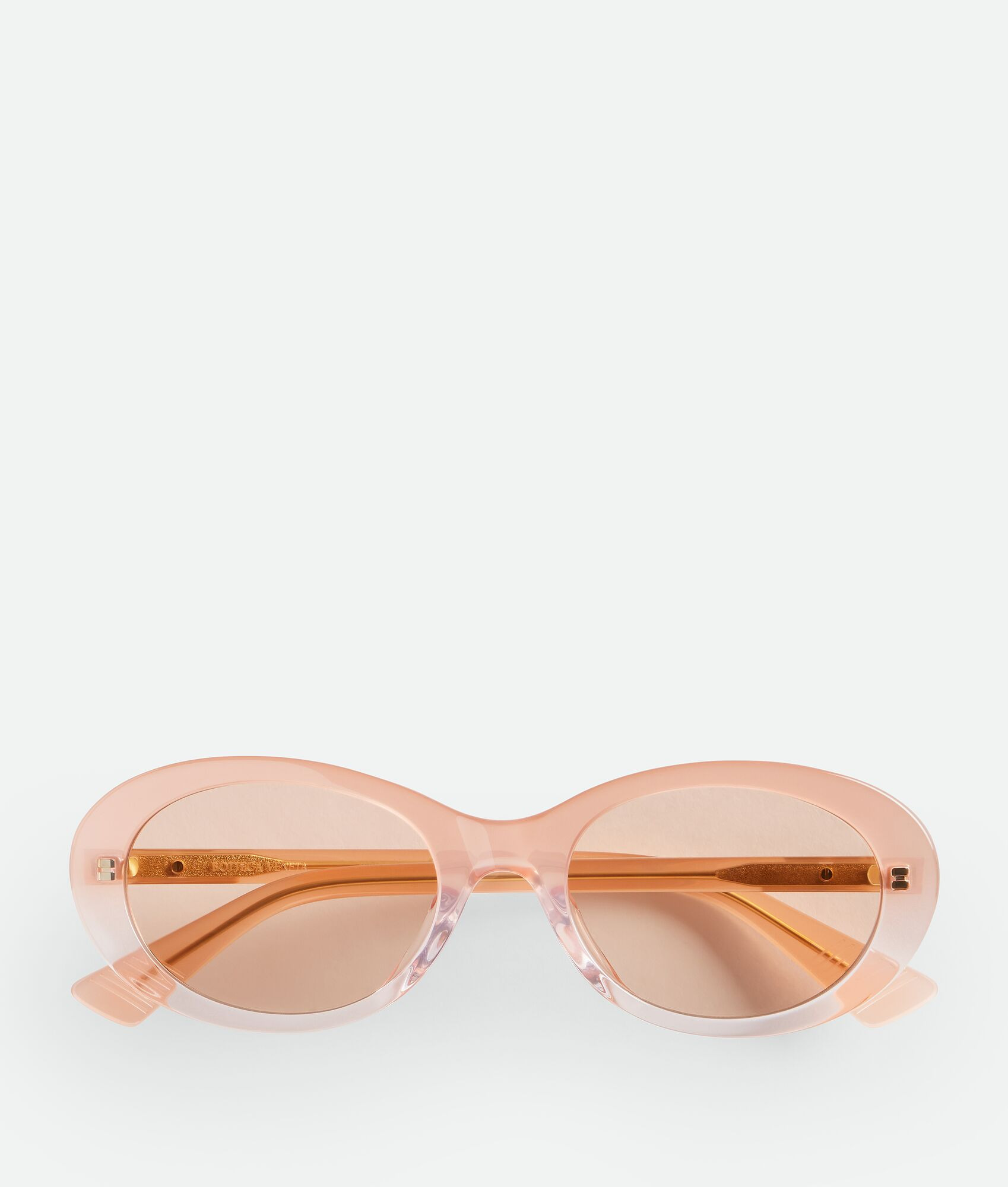Oval sunglasses in recycled acetate with signature gold-finished ribbon detailing. Product Details - Oval sunglasses made with Eastman Acetate Renew, an acetate with 27% recycled content - Lenses made from polyamide with 39% bio-based content - Alternative fit available - Gold-finished ribbon detail at the temples - BV1415SK 004 - Color: Pink - Made in: Italy - Product code: 845797V2Q305126 Material - Material: Recycled acetate Size & Fit - Lens width: 54 mm | 2.1" - Bridge length: 20 mm | 0.8" - Temple length: 145 mm | 5.7"