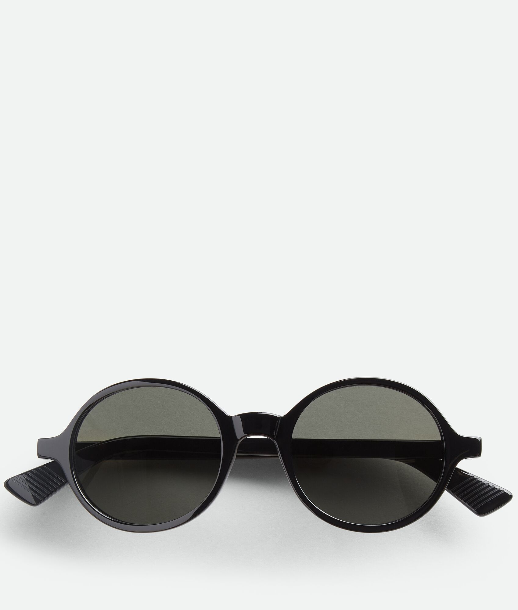 Round sunglasses in recycled acetate with signature gold-finished ribbon detailing. Product Details - Round sunglasses made with Eastman Acetate Renew, an acetate with 27% recycled content - Lenses made from polyamide with 39% bio-based content - Gold-finished ribbon detail at the temples - Lens width: 48 mm | 1.9"; Bridge length: 20 mm | 0.8"; Temple length: 145 mm | 5.7" - BV1430S 001 - Color: Black/Gray - Made in: Italy - Product code: 841239V2Q301049