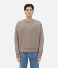 Jumper with crew neck realised in double knitted warm cashmere with a soft felted Product Details - Compact cashmere crew neck jumper - Relaxed fit - Material: 100% Cashmere - Color: Riverbed Melange - Made in: Italy - Product code: 753830V33N01830 Size & Fit - Model is 186 cm | 6'1" and is wearing a Bottega Veneta size S