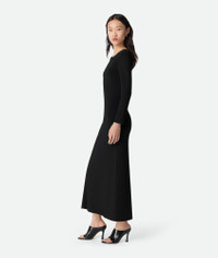 Long dress realised in lightweight compact viscose with metal knot chain detail at Product Details - Lightweight compact viscose long dress - Metal knot chain detail at the back - Slim fit - Material: 100% Viscose - Color: Black - Made in: Italy - Product code: 830452V5LM01000 Size & Fit - Model is 177 cm | 5'9" and is wearing a Bottega Veneta size S