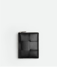 Intreccio leather wallet. Make it unique with a handmade customization by our Product Details - Intreccio leather wallet - Three card slots, one note compartment, three additional pockets, one folded coin purse - Material: calfskin - Lining: Calf leather - Color: Black - Hardware: Silver finish - Height: 12 cm I 4.7" - Width: 9.5 cm I 3.7" - Depth: 2 cm | 0.7" - Made in: Italy - Product code: 708614VBWD28803