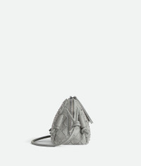 Product Details - Intrecciato suede and strass pouch - One main compartment, one interior flat pocket - Zipper closure with leather puller - Adjustable leather tubular strap with sliding knots - Lining: Calf leather - Color: Sterling - Hardware: Silver finish - Made in: Italy - Product code: 794258V5WS01503 Material - Material: Calfskin, lambskin Size & Fit - Height: 11.5 cm | 4.5" - Width: 18.5 cm | 7.3" - Depth: 8.5 cm | 3.3" - Strap drop: 55 cm | 21.7"