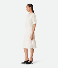 Top realised in lightweight cotton and silk with fish-inspired lace embroidery. Product Details - Lightweight cotton and silk fish lace top - Slip tank top - Regular fit - Material: 84% Cotton, 16% Silk - Color: Chalk - Made in: Italy - Product code: 833883V5ND09071 Size & Fit - Model is 177 cm | 5'9" and is wearing a Bottega Veneta size S