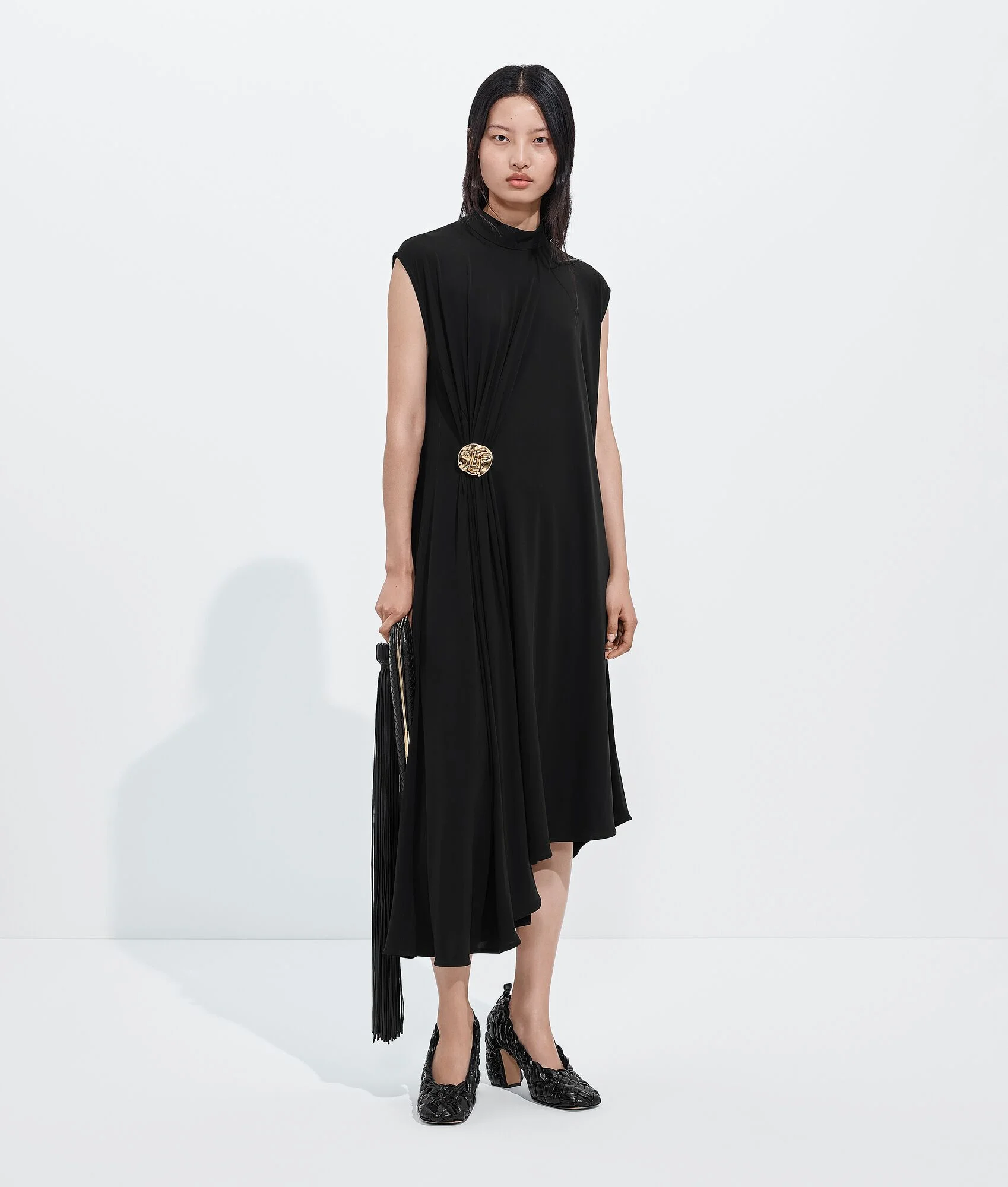Product Details - Matt crepe viscose jersey long dress - Face brooch at the side - Zipper closure - Regular fit - Color: Black - Made in: Italy - Product code: 867619V4YX01000 Material - Material: 100% viscose
