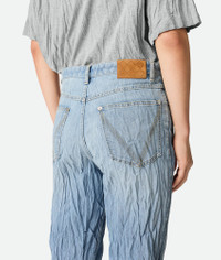 Jeans in light bleached denim with crushed effect. Product Details - Lightweight bleached denim trousers - Crushed effect - Button closure - Material: 100% Cotton - Color: Light Blue - Made in: Italy - Product code: 833038V5N104942 Size & Fit - Model is 188 cm|6'2" and is wearing a Bottega Veneta size 46
