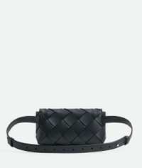 Belt bag in smooth Intreccio leather with contrasted colour interior. Product Details - Intreccio leather belt bag with adjustable strap and contrasted color interior - Single interior open pocket - Magnetic closure - Material: Calfskin - Lining: Suede bonded Intreccio - Color: Ardoise - Hardware: Silver finish - Height: 10 cm | 3.9" - Width: 19 cm | 7.5" - Depth: 5 cm | 2" - Made in: Italy - Product code: 805773V56A12077