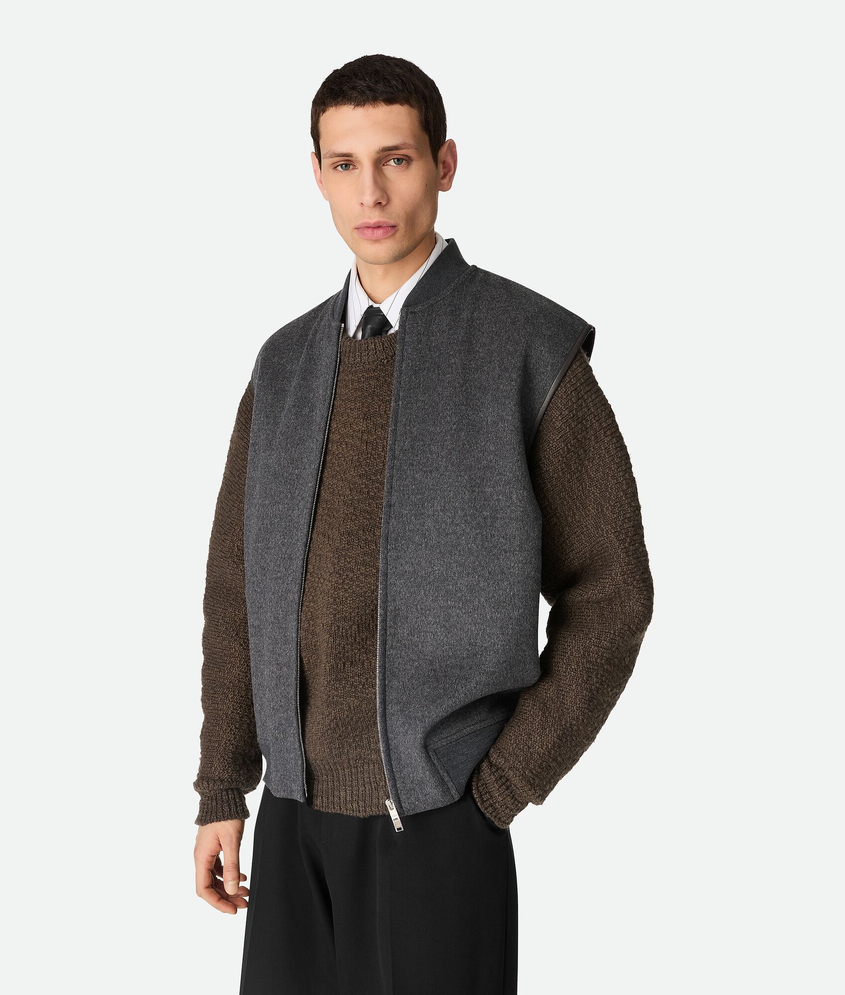 Gilet in double face wool. Product Details - Double face wool gilet - Zipper and hook closure - Relaxed fit - Color: Charcoal Melange - Made in: Italy - Product code: 837084V4CB01307 Size & Fit - Model is 188 cm|6'2" and is wearing a Bottega Veneta size 46