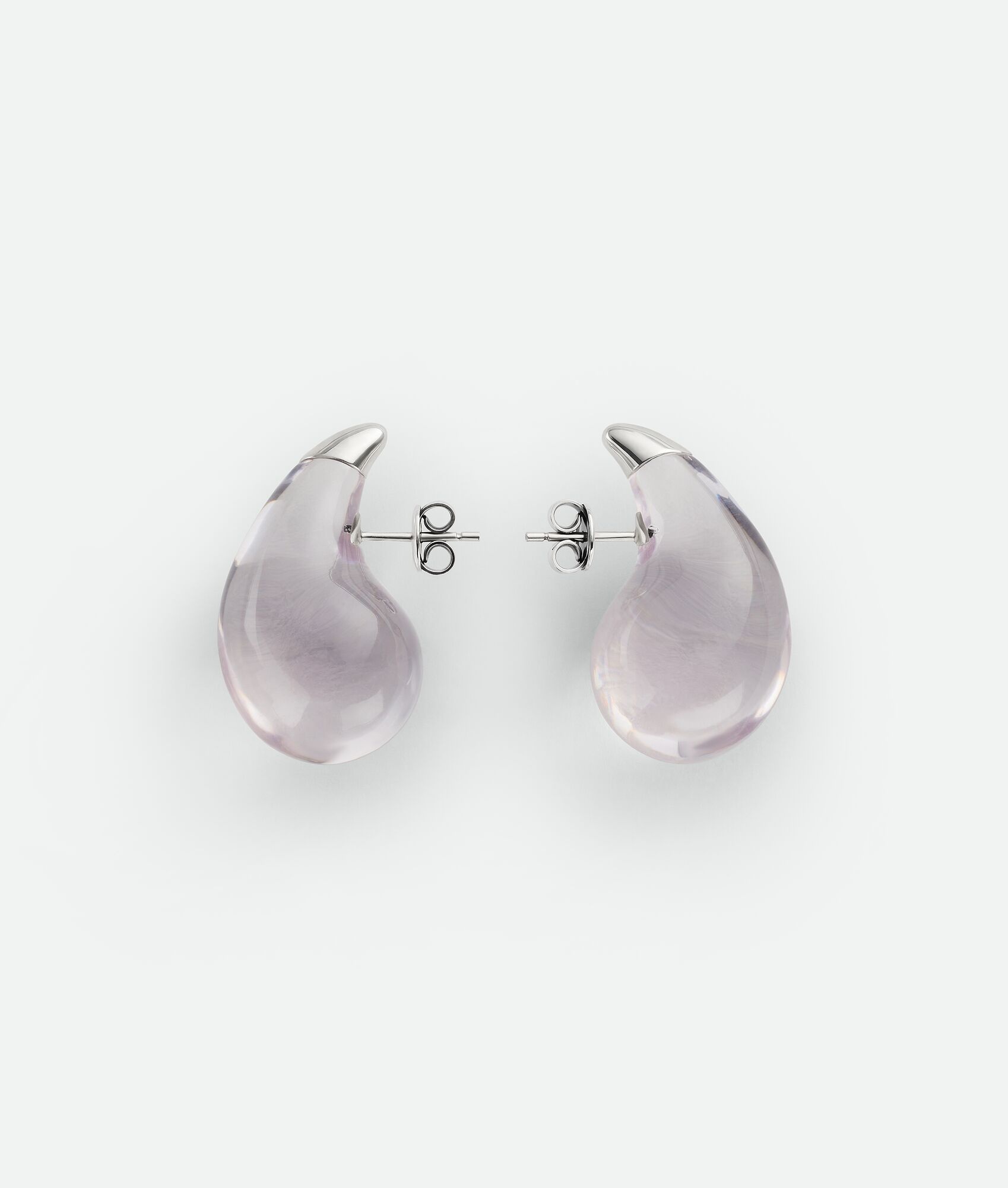 Earrings with signature drop shape realised in transparent resin and lightweight Product Details - Sterling silver and resin earrings - Pin butterfly closure - Length: 30 mm | 1.2" - Width: 20 mm | 2" - Material: Sterling silver - Color: Transparent - Due to hygiene-related reasons, this piece may not be returned - Made in: Italy - Product code: 786247VBOH68340