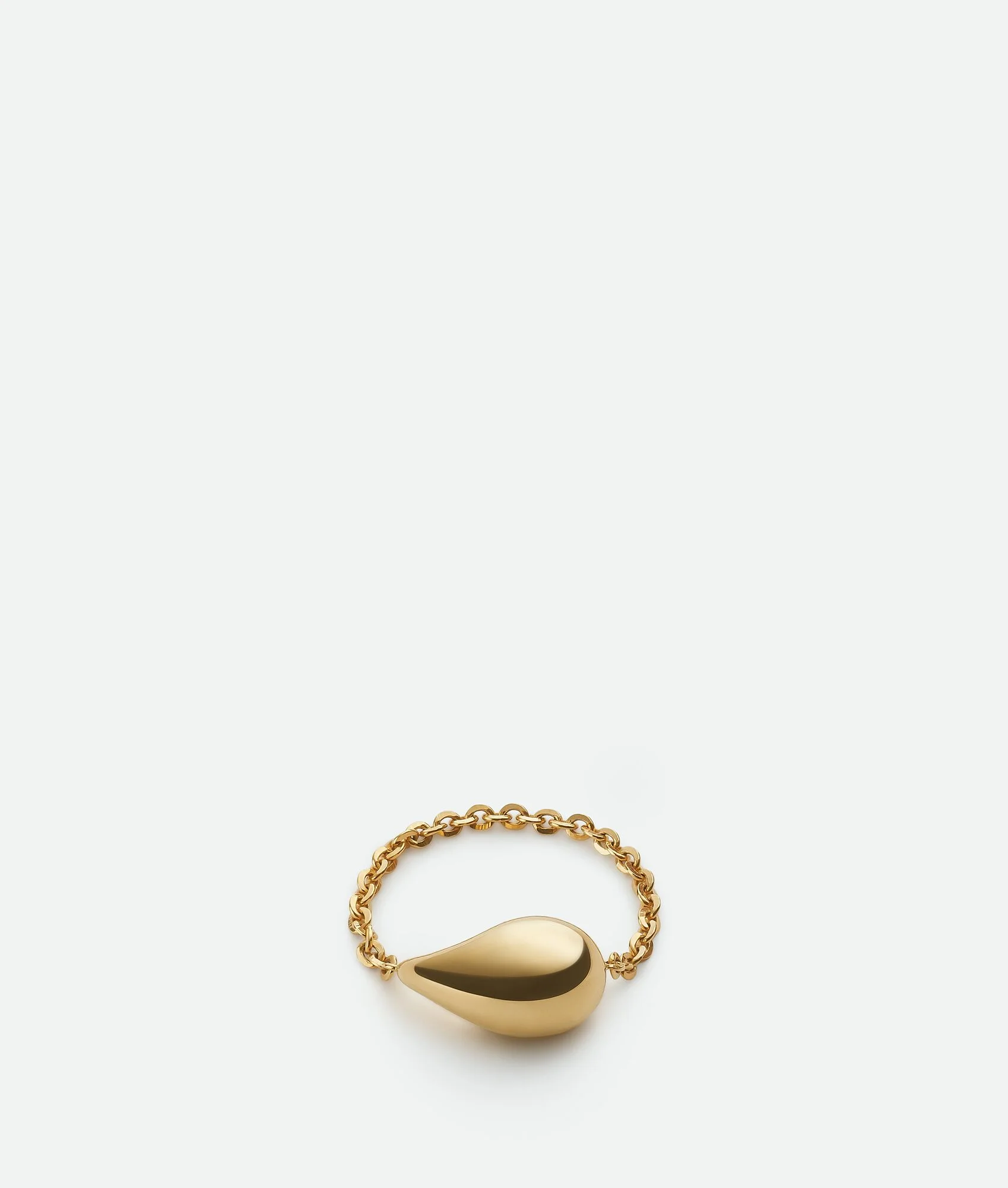 Chain ring with signature drop shape realized in 18k gold-finished sterling silver. Product Details - 18k gold-finish sterling silver chain ring - Color: Yellow Gold - Made in: Italy - Product code: 857255VAHU08120 Material - Material: Sterling silver Size & Fit - Drop width: 14 mm (0.6")