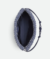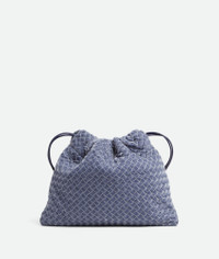 Product Details - Intreccio velvet pouch - One main compartment - Drawstring closure - Leather loop attachment with snap button for shoulder carry - Lining: Nylon - Color: Ash Violet - Hardware: Gold finish - Made in: Italy - Product code: 839042V5U815372 Material - Material: Lambskin Size & Fit - Height: 19 cm (7.5") - Width: 33 cm (13.0") - Depth: 8 cm (3.1") - Handle Drop: 45 cm (17.7") - Fits iPhone 16 Pro Max, a credit card case, airpods and keys.