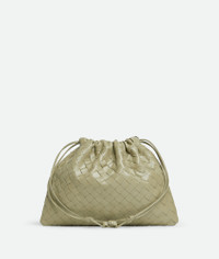 Intrecciato calfskin leather dustbag with transformable strap. Product Details - Single main compartment - Drawstring closure with leather loop attachement for shoulder carry - Material: calfskin - Lining: Nylon - Color: Travertine - Height: 23 cm | 9” - Width: 32 cm | 12.6” - Depth: 1 cm | 0.4” - Strap drop: 35 cm | 13.8” - Made in: Italy - Product code: 796728V3IV12916