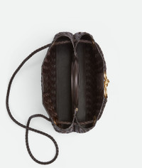 Top handle bag with an elongated silhouette meticulously crafted from supple Intrecciato Product details • Small horizontal Intrecciato leather top handle bag with sliding cross-body strap • Compartmented interior with one zippered pocket, two open pockets • Magnetic closure Material: Lambskin • Lining: Lambskin bonded Intrecciato • Color: Fondant • Hardware: Brass finish • Height: 18 cm | 7.1" • Width: 29 cm | 11.4" • Depth: 10 cm | 3.9" • Handle drop: 8 cm | 3.15" • Strap drop: 55.5 cm | 21.9" Made in: Italy