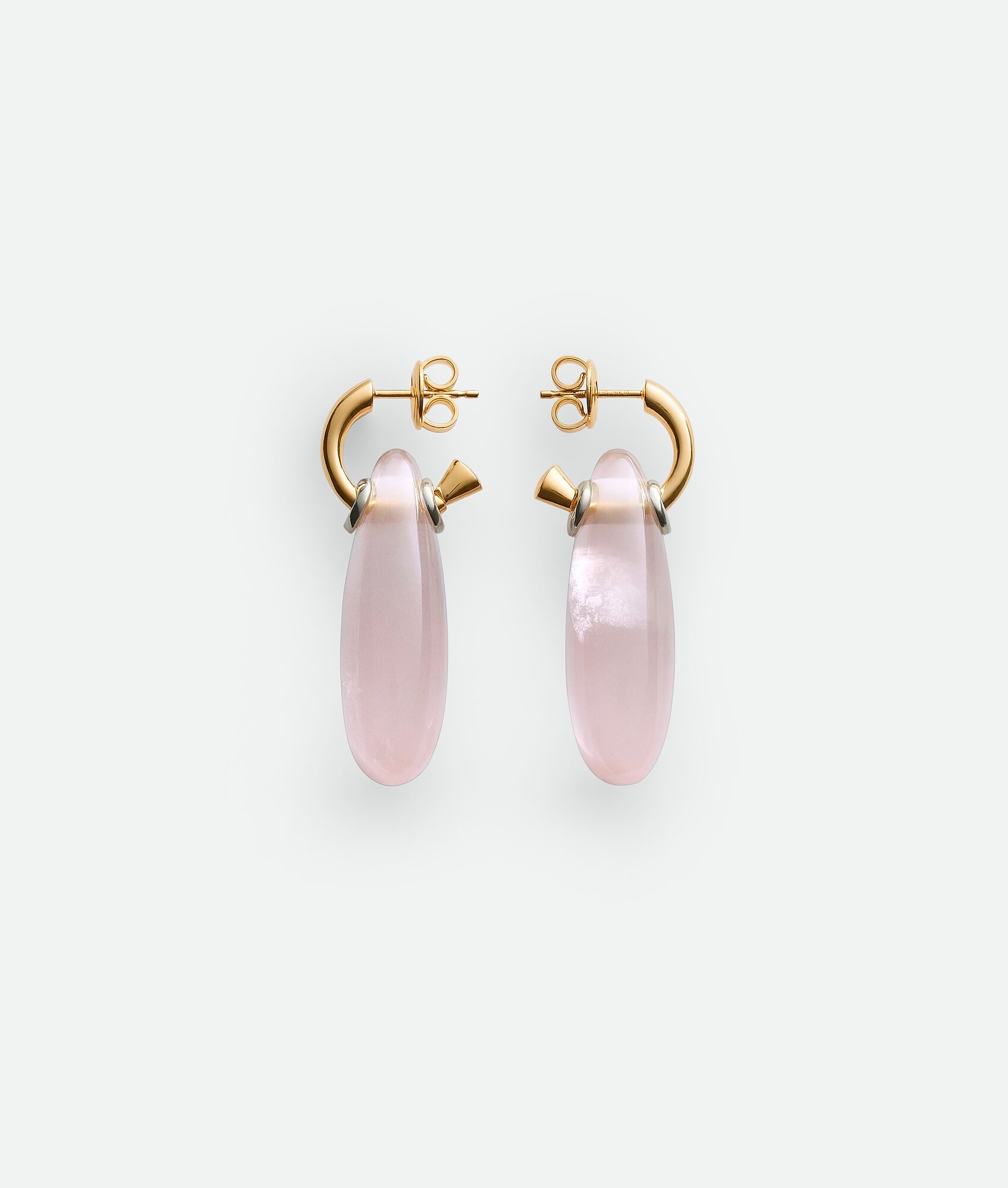 Sculptural earrings with elongated shape realised in pink quartz and 18k gold-finished Product Details - 18k gold-finish sterling silver small earrings with pink quartz stone - Pin butterfly closure - Length: 41.6 mm | 0.2" - Material: Sterling silver, quartz - Color: Pink Quartz - Due to hygiene-related reasons, this piece may not be returned - Made in: Italy - Product code: 815876VBI0B6324