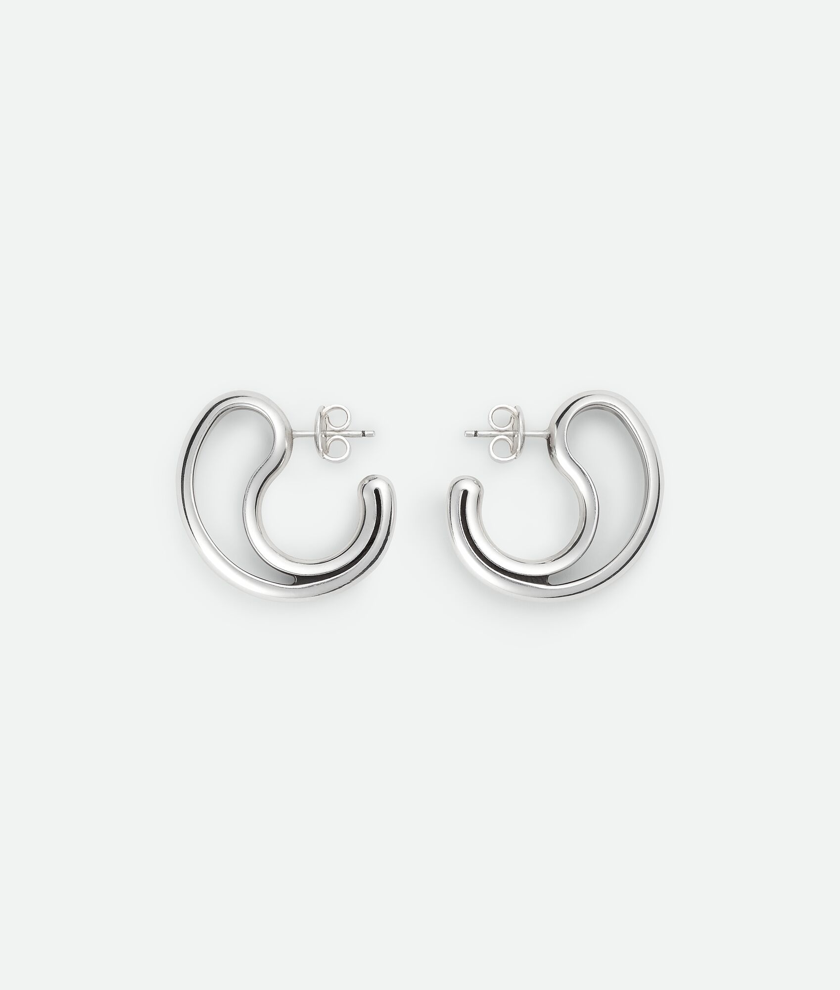 Earrings with frill-inspired silhouette in sterling silver. Product Details - Sterling silver large earrings - Pin butterfly closure - External dimension: 30 mm | 1.2" - Width: 4 mm | 0.2” - Material: sterling silver - Color: Silver - Due to hygiene-related reasons, this piece may not be returned - Made in: Italy - Product code: 804847V50708117