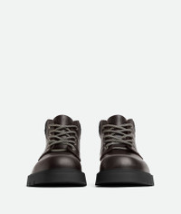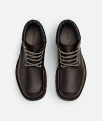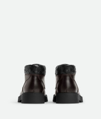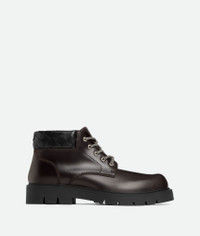 Cropped lace-up boot in calfskin leather with Intrecciato lambskin collar. Product Details - Leather lace-up cropped boot - Intrecciato collar - Lining: Calf leather - Color: Fondant/Black - Rubber outsole - Made in: Italy - Product code: 841489V2WT12117 Material - Material: Calfskin, lambskin Size & Fit - Flatform: 4.5 cm | 1.8"