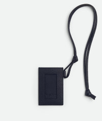 Badge holder in grained Intrecciato calf leather. Product Details - Grained Intrecciato calfskin leather badge holder - One card compartment - Leather lanyard - Lining: Calf leather - Color: Nocturnal - Made in: Italy - Product code: 844600V5I504185 Material - Material: Calfskin Size & Fit - Height: 10.5 cm | 4.1" - Width: 7 cm | 2.8" - Depth: 0.5 cm | 0.2" - Strap Drop: 45 cm | 17.7"