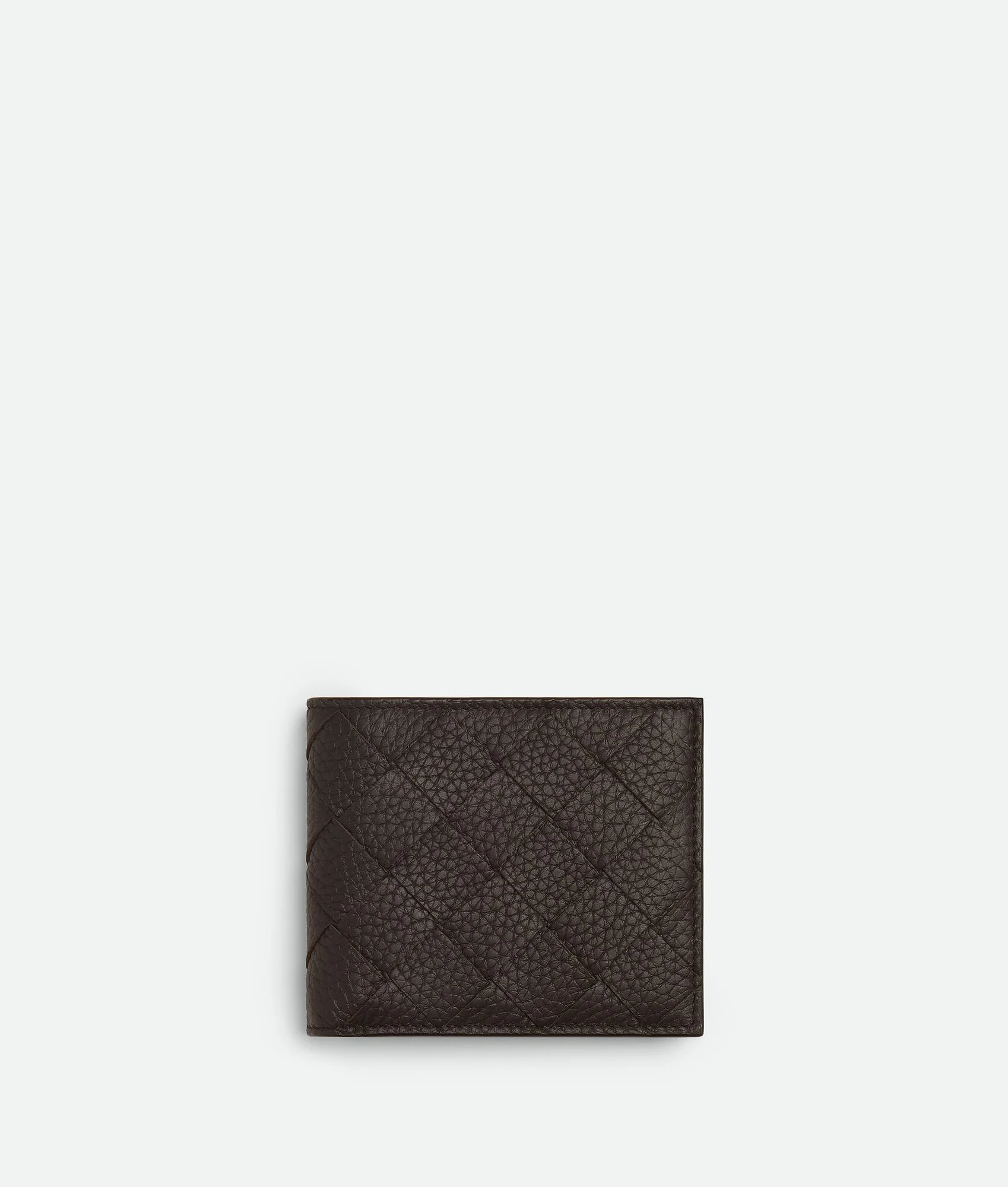 Bi-fold wallet in grained Intrecciato calf leather. Product Details - Grained Intrecciato calfskin leather wallet. - Eight card slots, two note compartments, two additional pockets - Lining: Calfskin - Color: Fondant - Hardware: Silver finish - Made in: Italy - Product code: 743211V5I512145 Material - Material: Calfskin Size & Fit - Height: 9.5 cm (3.7") - Width: 11 cm (4.3") - Depth: 1 cm (0.4")