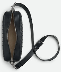 Cross-body bag in Intrecciato leather with detachable strap. Product Details - Intrecciato leather cross-body bag with detachable strap and metal D-ring - One interior zipped pocket with leather trimming, one open pocket in canvas - Zipper closure - Material: Calfskin - Lining: Canvas - Color: Ardoise - Hardware: Silver finish - Height: 19.5 cm | 7.7" - Width: 29 cm | 11.4" - Depth: 7.5 cm | 3" - Strap drop: 55 cm | 21.7" - Made in: Italy - Product code: 755925V2HL12077