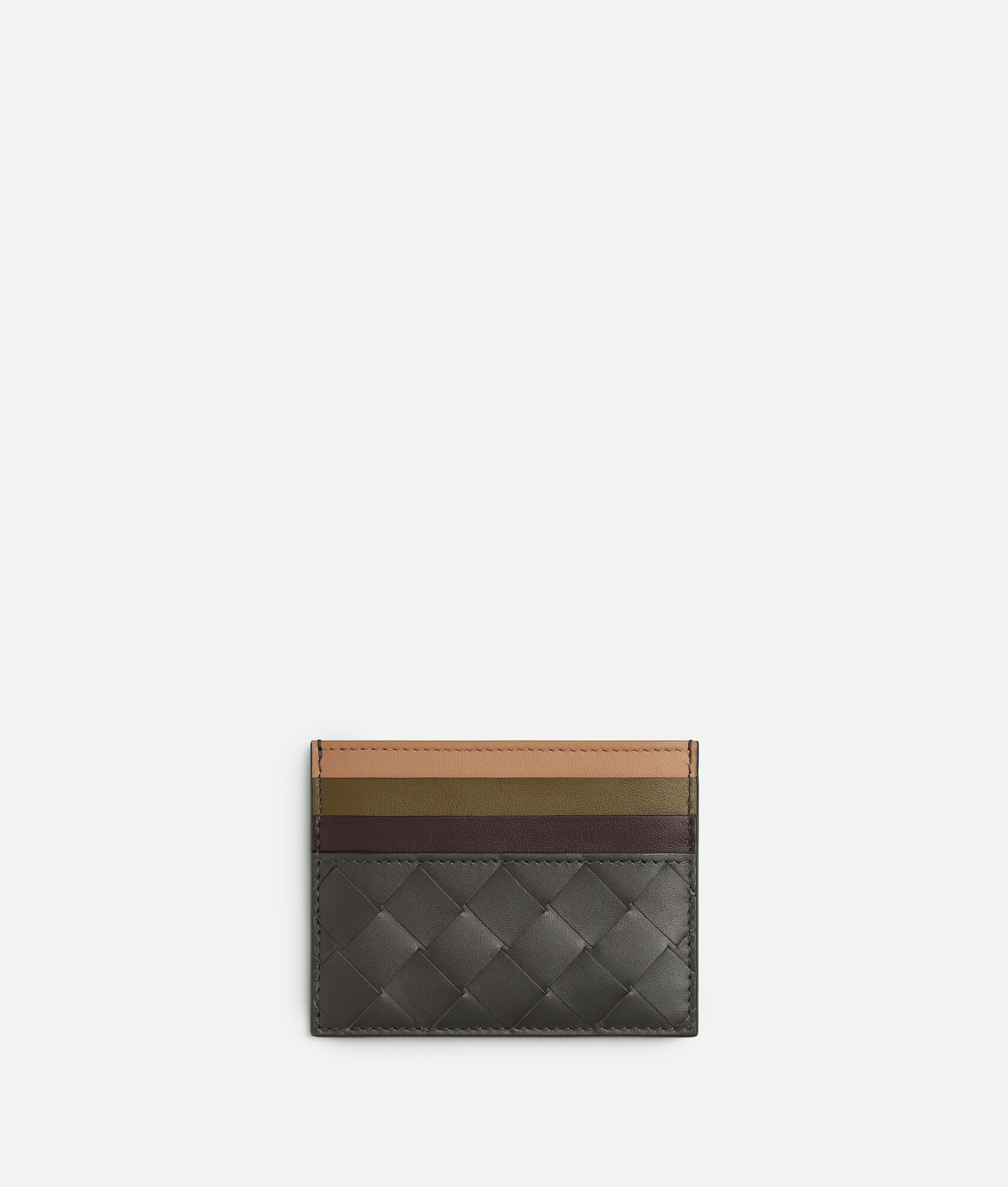Credit card case in Intrecciato calf leather with multicolour card slots. Product Details - Intrecciato calfskin leather card case with multicolor card slots - Six card slots, one central pocket - Lining: Calf leather - Color: Graphite/Rainbow - Made in: Italy - Product code: 796387VCPQG1048 Material - Material: Calfskin Size & Fit - Height: 8 cm | 3.1" - Width: 10.5 cm | 4.1" - Depth: 0.5 cm | 0.2"