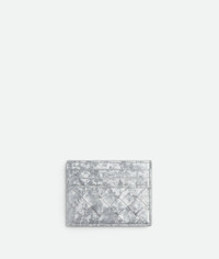 Credit card case in Intrecciato laminated leather with satin finish. Product Details - Intrecciato lamina satin leather card case - Six card slots, one central pocket - Lining: Lambskin - Color: Silver - Made in: Italy - Product code: 796324V5XF18101 Material - Material: Lambskin Size & Fit - Height: 8 cm | 3.1" - Width: 10.5 cm | 4.1" - Depth: 0.5 cm | 0.2"