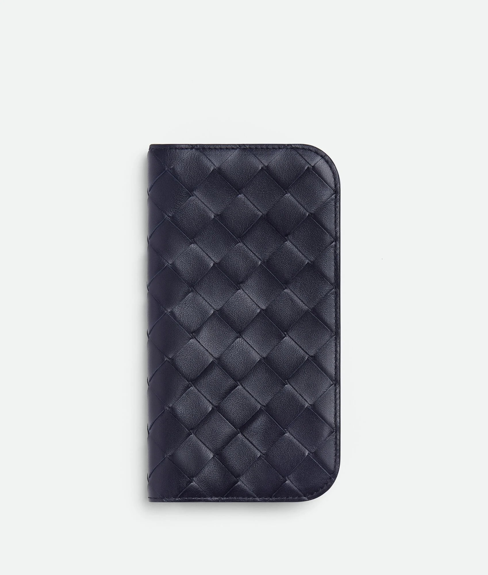 iPhone 16 Pro case with flap in Intrecciato calf leather. Product Details - Intrecciato calfskin leather iPhone 16 Pro case with flap - Three card slots, one additional pocket - Lining: Nappa - Color: Nocturnal - Made in: Italy - Product code: 838801VCRL04185 Material - Material: Lambskin Size & Fit - Height: 15.4 cm (6.1") - Width: 8 cm (3.1") - Depth: 0.5 cm (0.2")