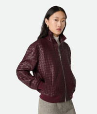 Blouson made with Intrecciato craftsmanship in soft lambskin. Product Details - Intrecciato lambskin leather blouson - Elasticated waistband - Zipper closure - Fully lined - Regular fit - Material: 100% Lambskin - Color: Jam - Made in: Italy - Product code: 837205V2JG06206 Size & Fit - Model is 177 cm | 5'9" and is wearing a Bottega Veneta size 38