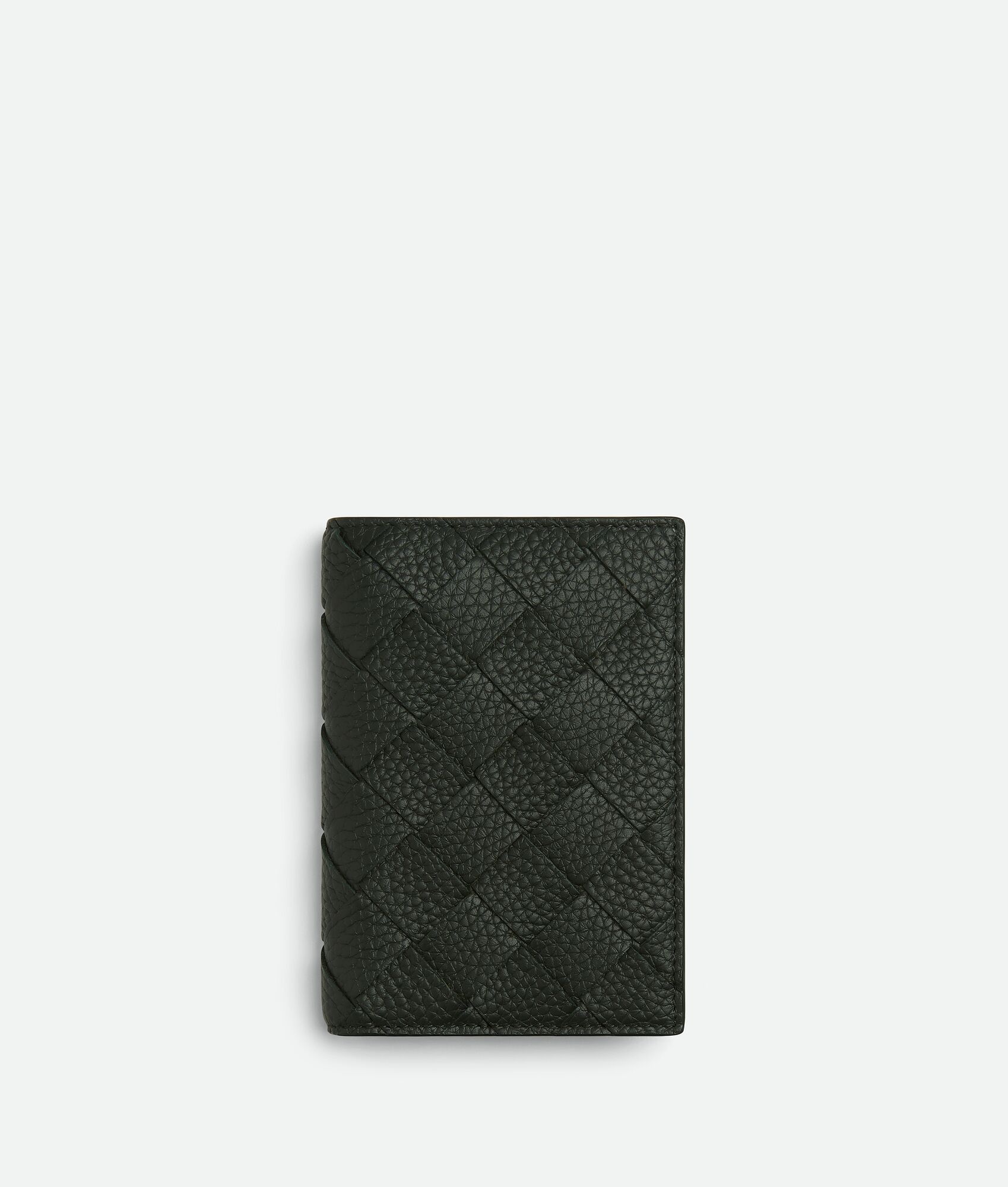 Grained Intrecciato calfskin leather passport case. Product Details - Five card slots, two additional pockets - Material: Calfskin - Lining: Calfskin - Colour: Dark Green - Height: 13.3 cm | 5.2” - Width: 9.5 cm | 3.7” - Depth: 0.5 cm | 0.2” - Made in: Italy - Product code: 749441V5I513350