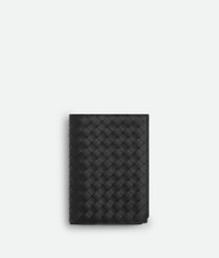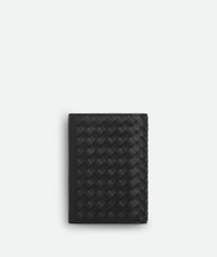 Intrecciato piccolo calfskin leather passport case. Product Details - Two card slots, two additional pockets - Our VN Preserve calfskin leather is crafted using the BioBasedLeather® tanning process, which reduces the use of petroleum-based components to less than 3% and is fully powered by renewable energy sources - Material: calfskin - Lining: Calfskin - Color: Black - Height: 13.3 cm | 5.2” - Width: 9.5 cm | 3.7” - Depth: 0.5 cm | 0.2” - Made in: Italy - Product code: 817398V4LQ28803