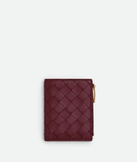 Intrecciato nappa leather wallet. Product Details - Six card slots, one bill compartment, two additional pockets, one zipped coin purse - Press stud closure - Material: lambskin, calfskin - Lining: Calfskin - Colour: Barolo - Hardware: Gold finish - Height: 11.5 cm - Width: 9 cm - Depth: 1 cm - Made in: Italy - Product code: 742330VCPP32247