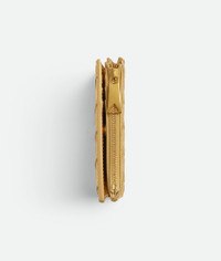 Small bi-fold wallet in Intrecciato laminated leather with satin finish. Product Details - Intrecciato lamina satin leather wallet - Six card slots, one note compartment, one zipped coin purse - Press-stud closure - Lining: Calf leather - Color: Gold - Hardware: Gold finish - Made in: Italy - Product code: 742330V5XF18472 Material - Material: Lambskin Size & Fit - Height: 11.5 cm | 4.5" - Width: 9 cm | 3.5" - Depth: 1 cm | 0.4"