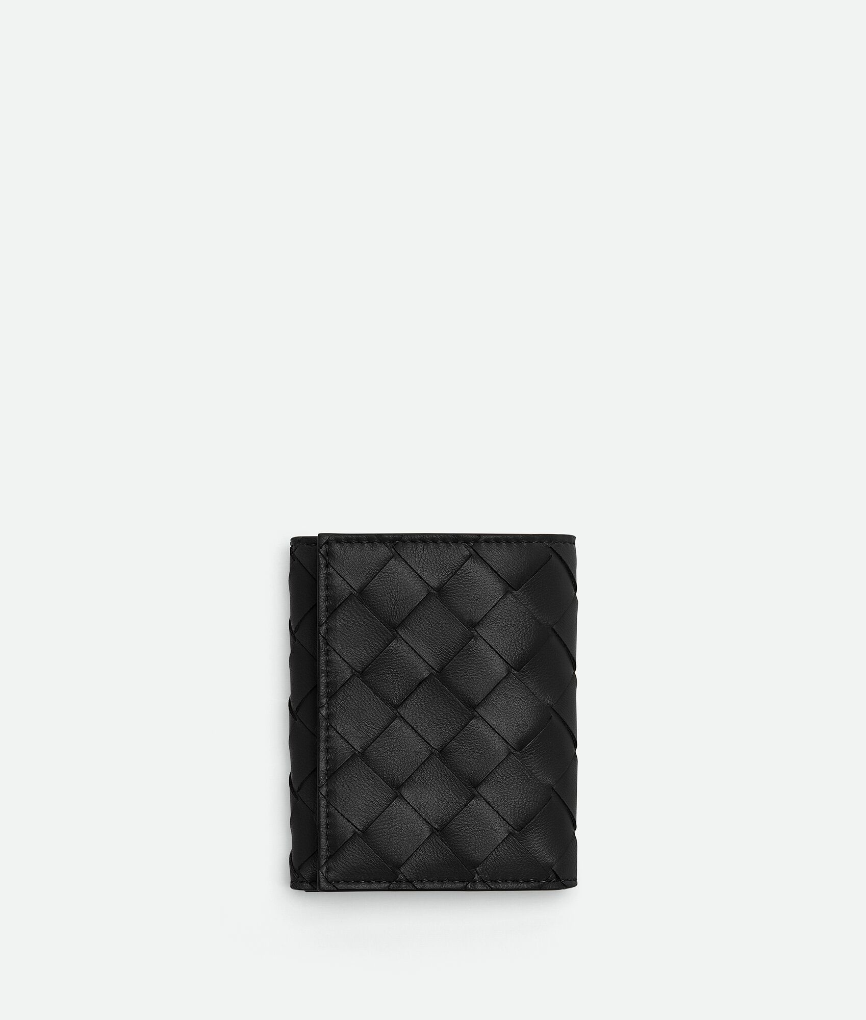 Product Details - Intrecciato nappa leather wallet - Four card slots, one note compartment, one zipped coin purse - Press stud closure - Lining: Calfskin - Colour: Black - Hardware: Gold finish - Height: 8 cm | 3.1" - Width: 10 cm | 3.9" - Depth: 1 cm | 0.4" - Made in: Italy - Product code: 740310VCPP28425