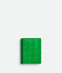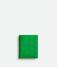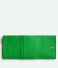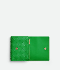 Product Details - Intrecciato nappa leather wallet - Four card slots, one note compartment, one zipped coin purse - Press stud closure - Lining: Calfskin - Colour: Parakeet - Hardware: Gold finish - Height: 8 cm | 3.1" - Width: 10 cm | 3.9" - Depth: 1 cm | 0.4" - Made in: Italy - Product code: 740310VCPP23722