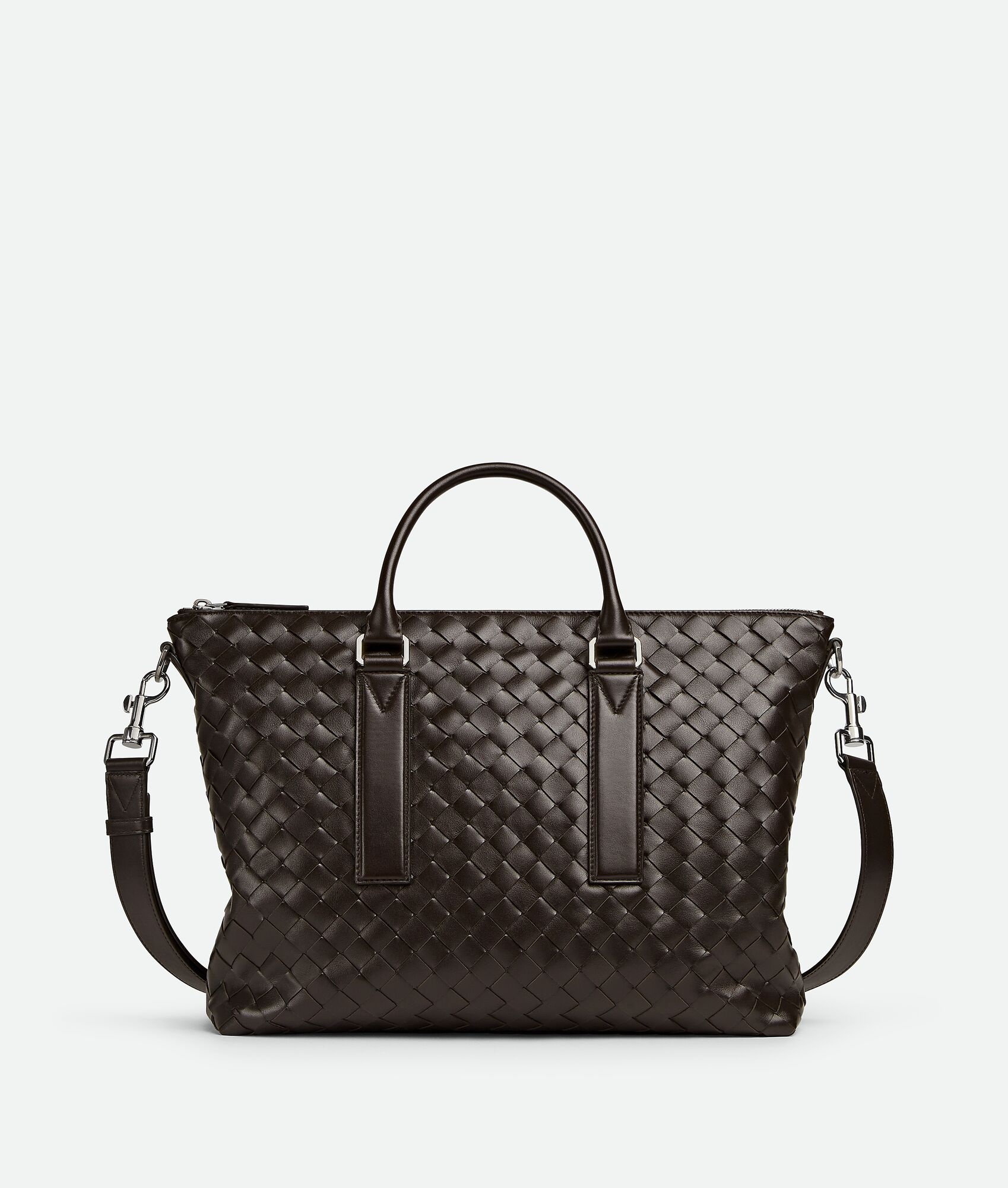 Soft briefcase in Intrecciato leather with adjustable and detachable strap and top Product Details - Intrecciato soft briefcase with adjustable and detachable strap and top handles - One interior zipped pocket and two flat open pockets - Zip closure - Material: calfskin - Lining: Canvas - Color: Fondant - Hardware: Silver finish - Height: 29 cm | 11.4” - Width: 35 cm | 13.8” - Depth: 7 cm | 2.7” - Handle drop: 10 cm | 3.9” - Strap drop: 62 cm | 24.4” - Made in: Italy - Product code: 815784V2HL12145