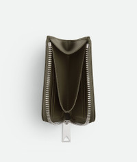 Square zip around wallet in calf leather with embossed Intrecciato pattern. Product Details - Intrecciato embossed calf leather wallet - Four interior card slots, one central coin purse, one divider to fold and organize bills - Zipper closure - Lining: Calf leather - Color: Cypress - Hardware: Silver finish - Height: 10 cm | 3.9" - Width: 10 cm | 3.9" - Depth: 1.5 cm | 0.6" - Made in: Italy - Product code: 817741V0AQ13227