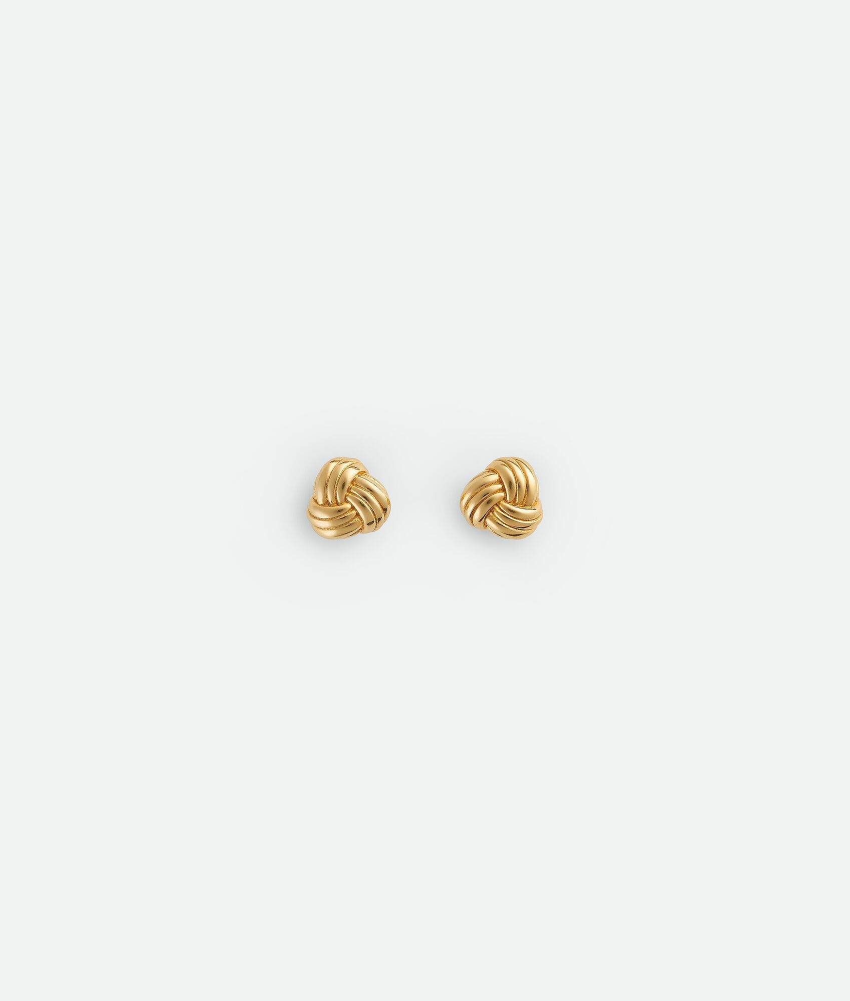 Earrings with signature Intreccio pattern crafted in hand-polished 18k gold-finished Product Details - 18k gold-finish sterling silver earrings - Pin butterfly closure - External dimensions: 9.7 mm | 0.4" - Material: Sterling silver - Color: Yellow Gold - Due to hygiene-related reasons, this piece may not be returned - Made in: Italy - Product code: 838176VAHU08120