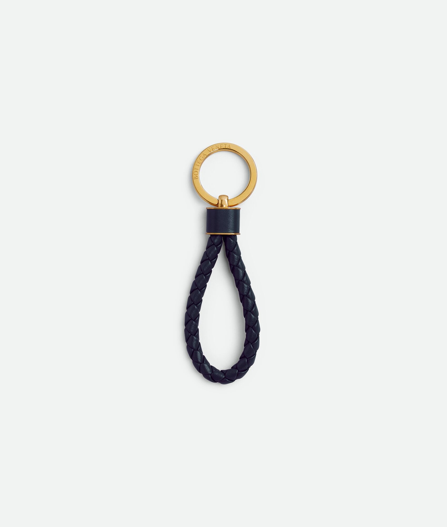 Intreccio nappa key ring. Product Details - Intreccio nappa key ring - Material: lambskin - Color: Space - Hardware: Gold finish - Height: 13.5 cm | 5.3" - Width: 3.5 cm | 1.4" - Depth: 0.5 cm | 0.2" - Made in: Italy - Product code: 651820V0HW18837