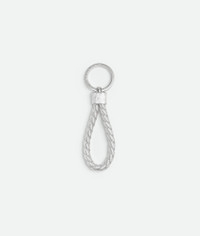 Key ring in Intreccio coaxial laminated leather with satin finish. Product Details - Intreccio coaxial lamina satin leather key ring - Single metal hook - Color: Gold - Hardware: Gold finish - Made in: Italy - Product code: 651820V5ZK08101 Material - Material: Lambskin Size & Fit - Height: 13.5 cm | 5.3" - Width: 3.5 cm | 1.4" - Depth: 0.5 cm | 0.2"