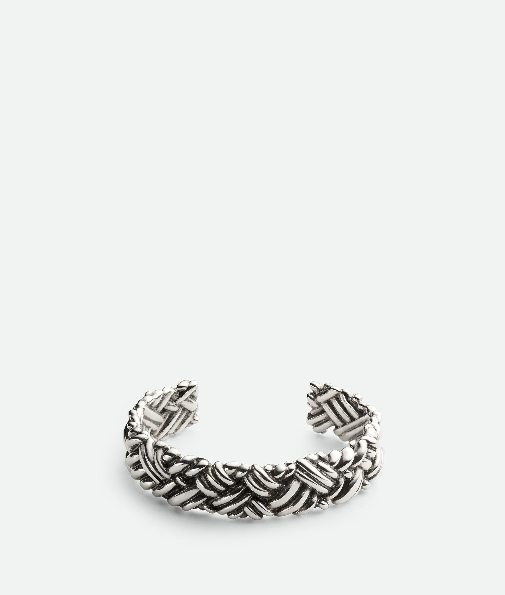 Cuff bracelet with signature Intreccio pattern crafted in hand-polished sterling Product Details - Sterling silver cuff bracelet - Thickness: 16.8 mm | 0.4" - Dimension size XS: 57 x 45 mm | 2.2" x 1.8" (24 mm | 0.9" opening) - Dimension size S: 60 x 48 mm | 2.4" x 1.9" (27 mm | 1.1" opening) - Dimension size M: 63 x 51 mm | 2.5" x 2" (30 mm | 1.2" opening) - Dimension size L: 66 x 54 mm | 2.6" x 2.1" (33 mm | 1.3" opening) - Dimension size XL: 66 x 54 mm | 2.6" x 2.1" (33 mm | 1.3" opening) - Material: sterling silver - Color: Silver - Made in: Italy - Product code: 795618V50708117