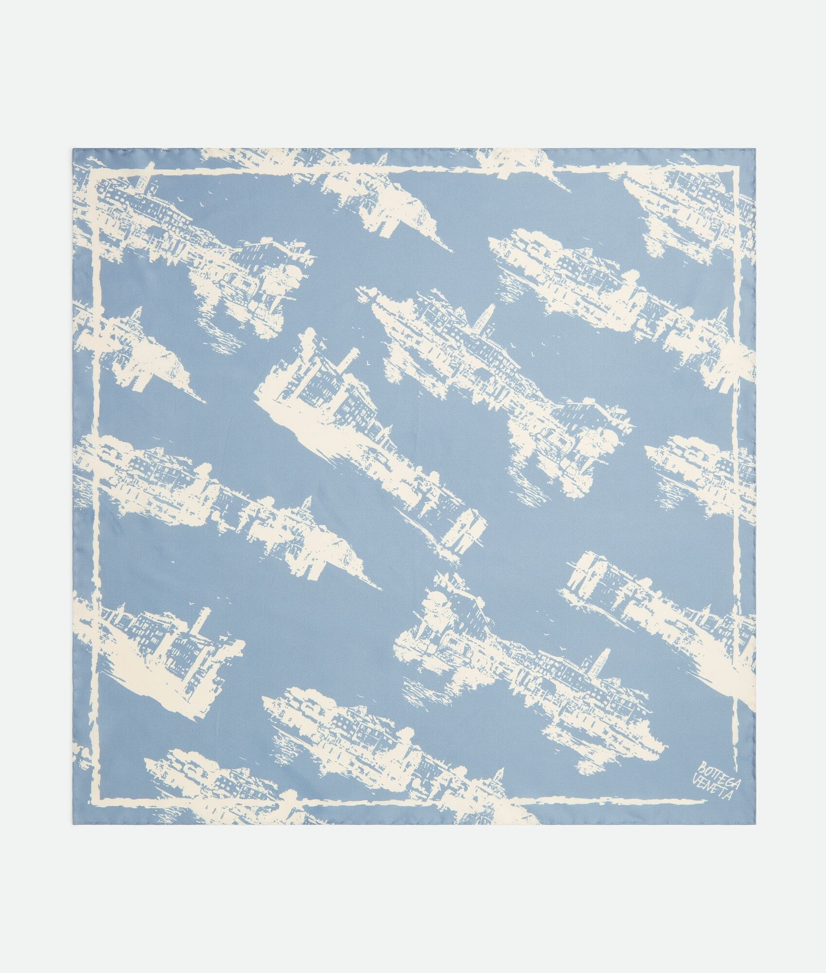 Foulard in lightweight silk with Italian postcard print. Product Details - Italian postcard printed silk foulard - 55 x 55 cm | 21.7 x 21.7" - Material: 100% Silk - Color: Blue/Dove - Made in: Italy - Product code: 815334V5VX04773
