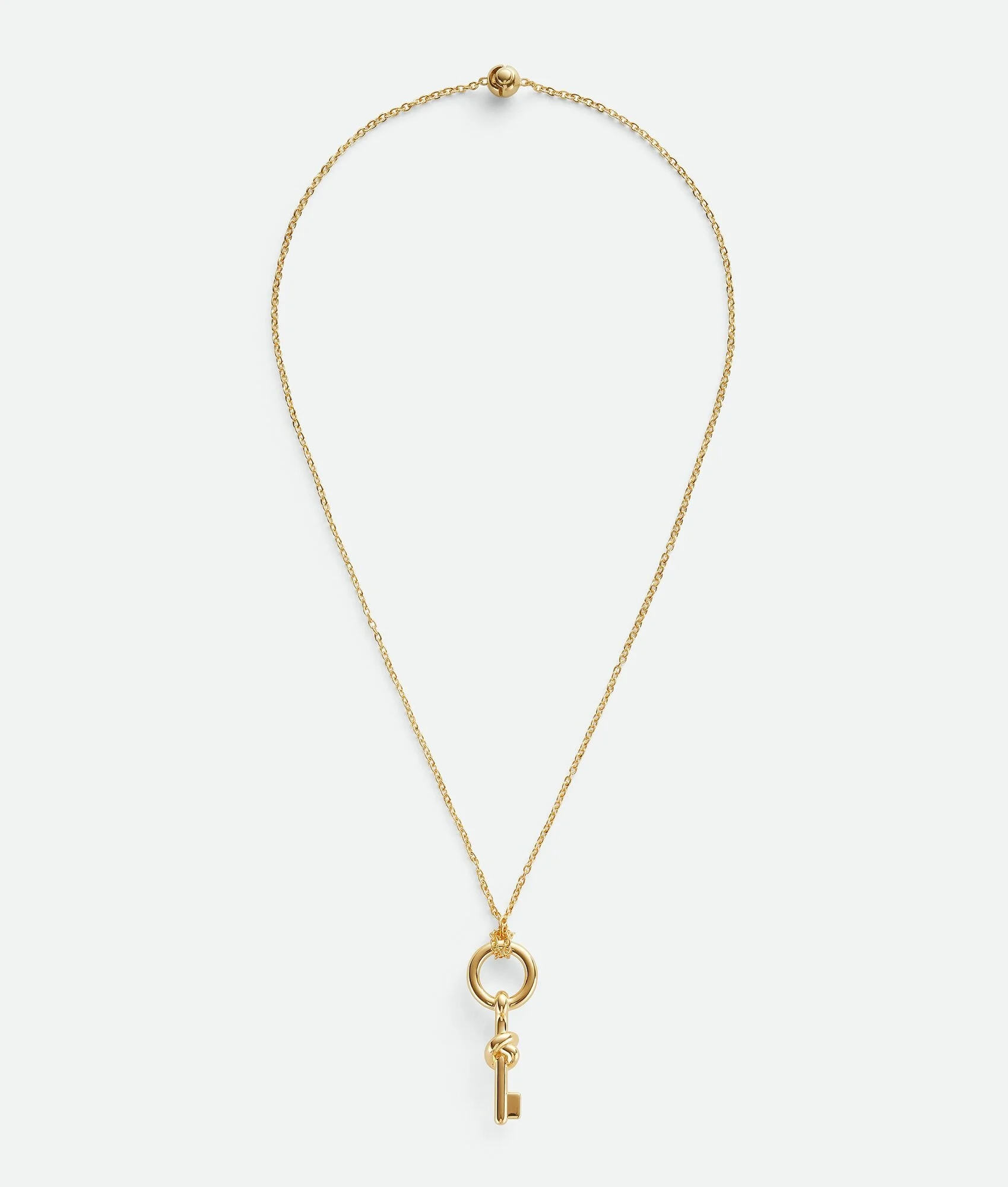 Necklace in 18k gold-finished sterling silver with signature knot pendant. Product Details - 18k gold-finish sterling silver pendant necklace - Custom-made push button closure - Length: 46 cm | 18.1” - Material: Sterling silver - Color: Yellow Gold - Made in: Italy - Product code: 816980VAHU08120