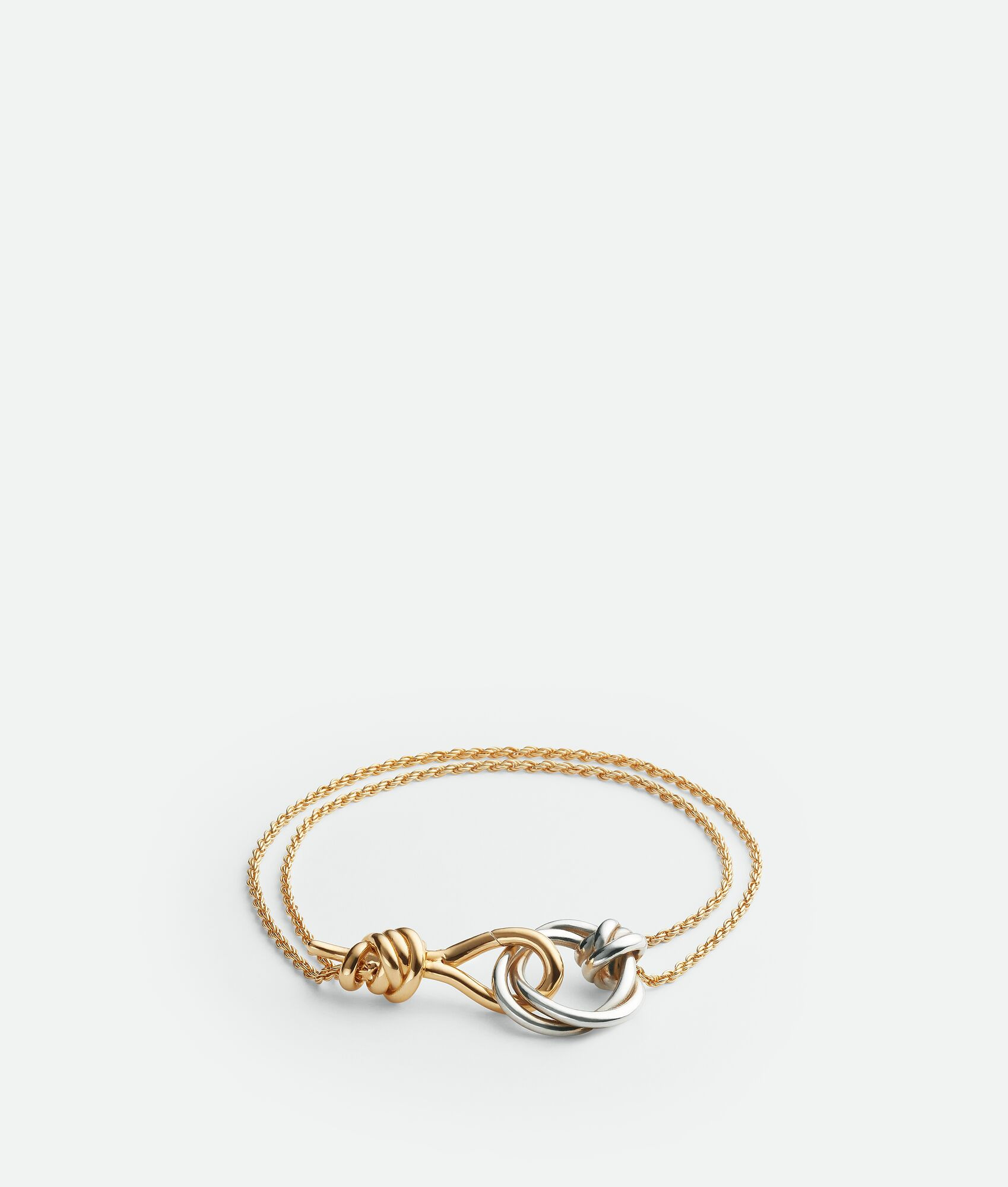 Bracelet with signature knot crafted in constrasting 18k gold-finished sterling silver. Product details • 18k gold-finish sterling silver bracelet • Custom-made spring closure • Length size XS: 15 cm | 5.9" • Length size S: 16.5 cm | 6.5" • Length size M: 18 cm | 7.1" • Length size L: 19.5 cm | 7.7" Material: Sterling silver • Color: Silver/Yellow Gold Made in: Italy