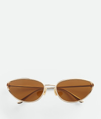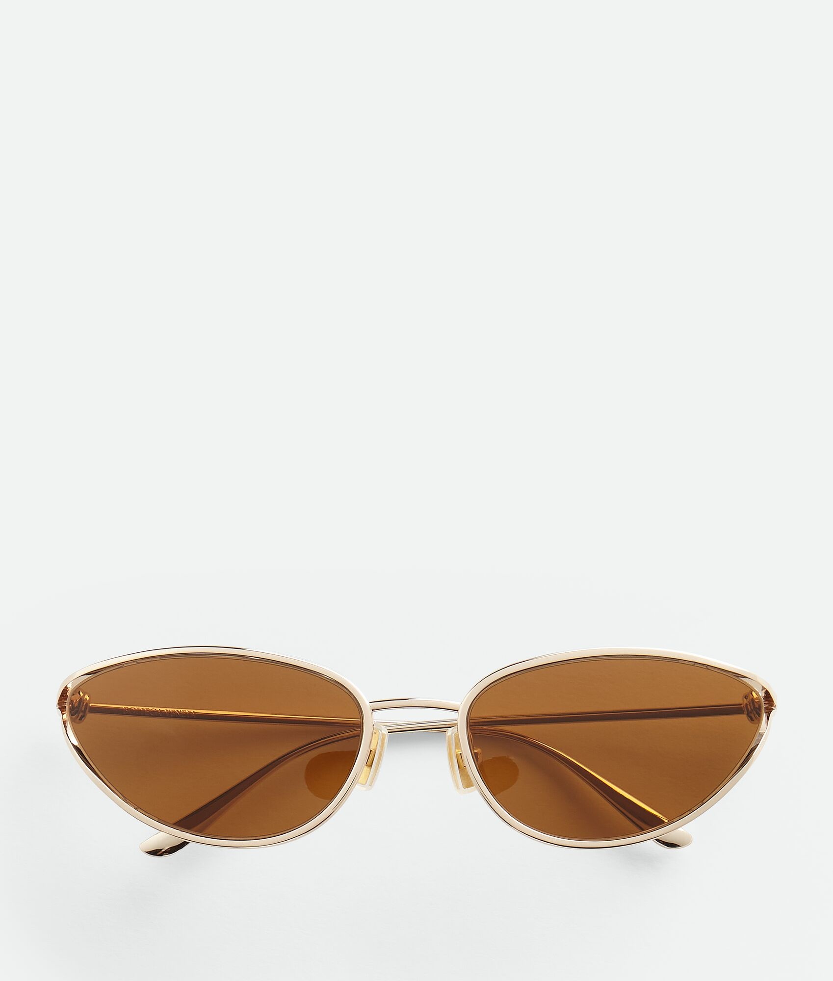 Cat eye sunglasses in metal with Knot detail on temples. Made in Japan. Product Details - Lenses made from polyamide with 39% bio-based content - Signature Knot reproduced on the temples - BV1330S 003 - Material: Metal - Color: Gold/Brown - Made in: Japan - Product code: 799386V44501251