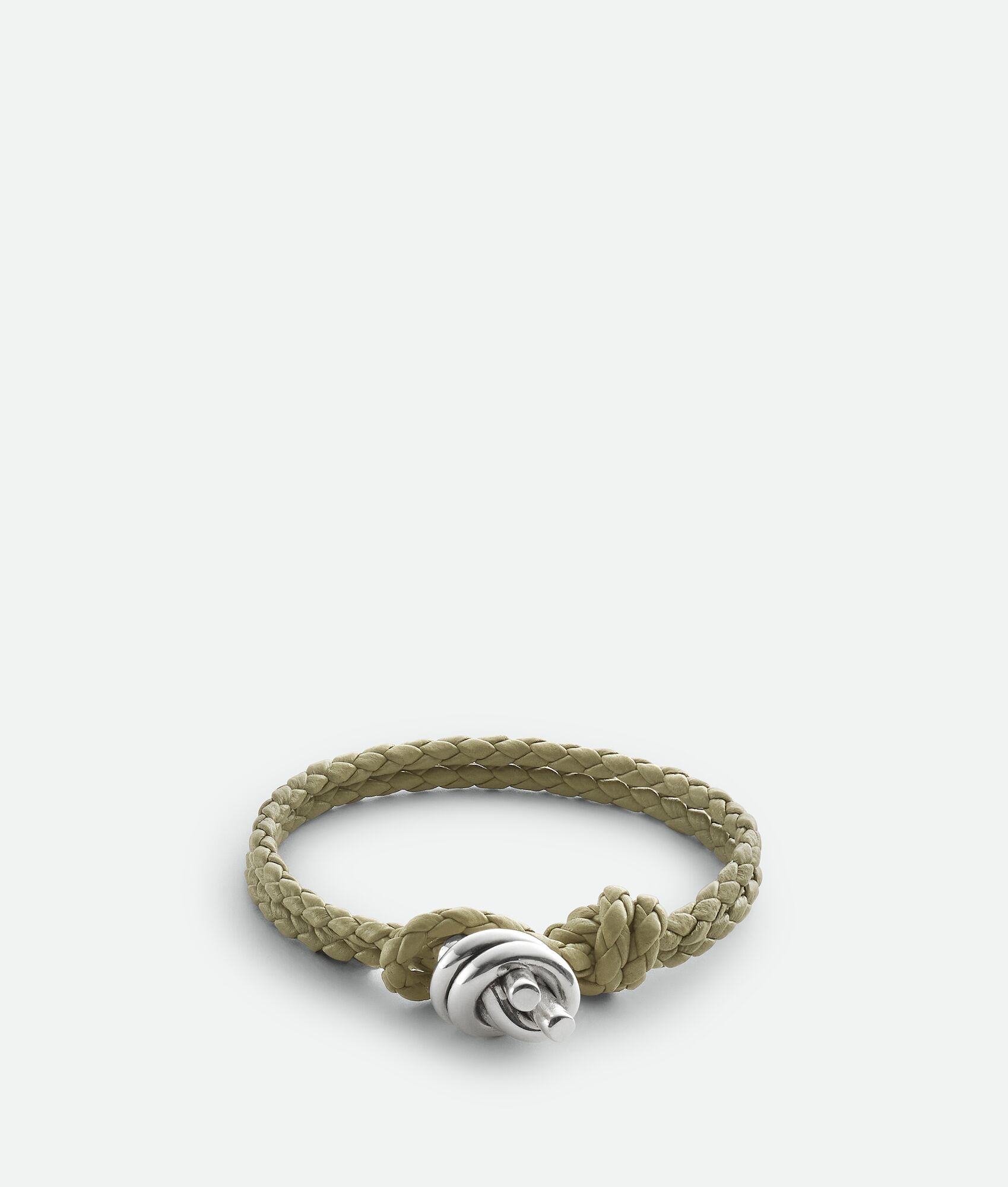 Bracelet in braided leather with signature knot crafted in sterling silver. Product Details - Sterling silver and braided leather bracelet - Knot dimensions: 16.8 x 13.3 mm | 0.07” x 0.06” - Material: Lambskin, sterling silver - Color: Travertine - Made in: Italy - Product code: 815938V507C2915
