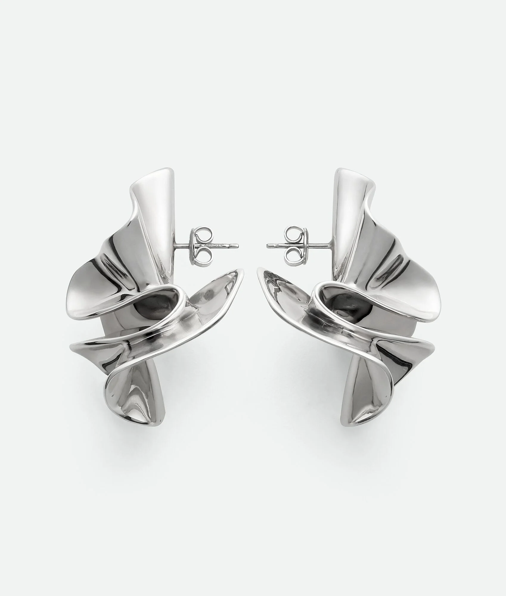 Earrings with sculptural, fluid silhouette in sterling silver. Product Details - Sterling silver large earrings - Pin butterfly closure - Color: Silver - Due to hygiene-related reasons, this piece may not be returned - Made in: Italy - Product code: 857361V50708117 Material - Material: Sterling silver Size & Fit - Height: 45 mm (1.8") - Width: 25 mm (1.0") - Thickness: 35 mm (1.4")