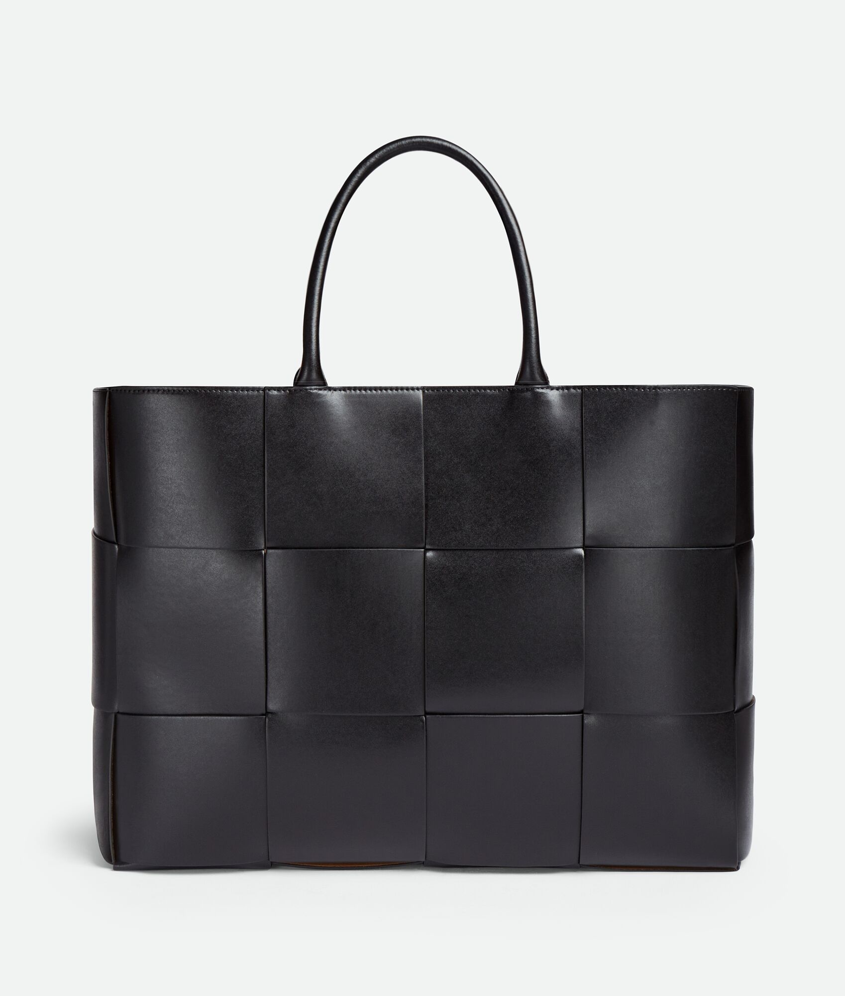Large intreccio leather tote bag. Product Details - Large intreccio leather tote bag - Single detachable interior zipped pocket - Material: lambskin - Lining: Bonded suede - Color: Black - Hardware: Silver finish - Height: 34.5 cm - Width: 46 cm - Depth: 11 cm - Handle drop: 18 cm - Made in: Italy - Product code: 736182VB1K08480