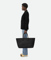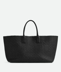 Intreccio leather tote bag. This bag is eligible for Certificate of Craft. Product Details - Large Intreccio leather tote bag - Detachable interior zipped pouch - Material: Lambskin - Lining: Lambskin bonded Intreccio - Color: Black - Hardware: Gold finish - Height: 33 cm | 20.1" - Width: 45 cm | 17.7" - Depth: 20 cm | 7.9" - Handle drop: 18 cm | 7.1" - Made in: Italy - Product code: 608811V1OW18425