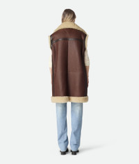Gilet realised in crackled effect leather and soft shearling. Product Details - Crackled-effect leather and shearling gilet - Leather tie closure - Relaxed fit - Color: Madder Brown/Birch - Made in: Italy - Product code: 832381V5VK08979 Material - Material: 100% Lambskin Size & Fit - Model is 177 cm | 5'9" and is wearing a Bottega Veneta size 38